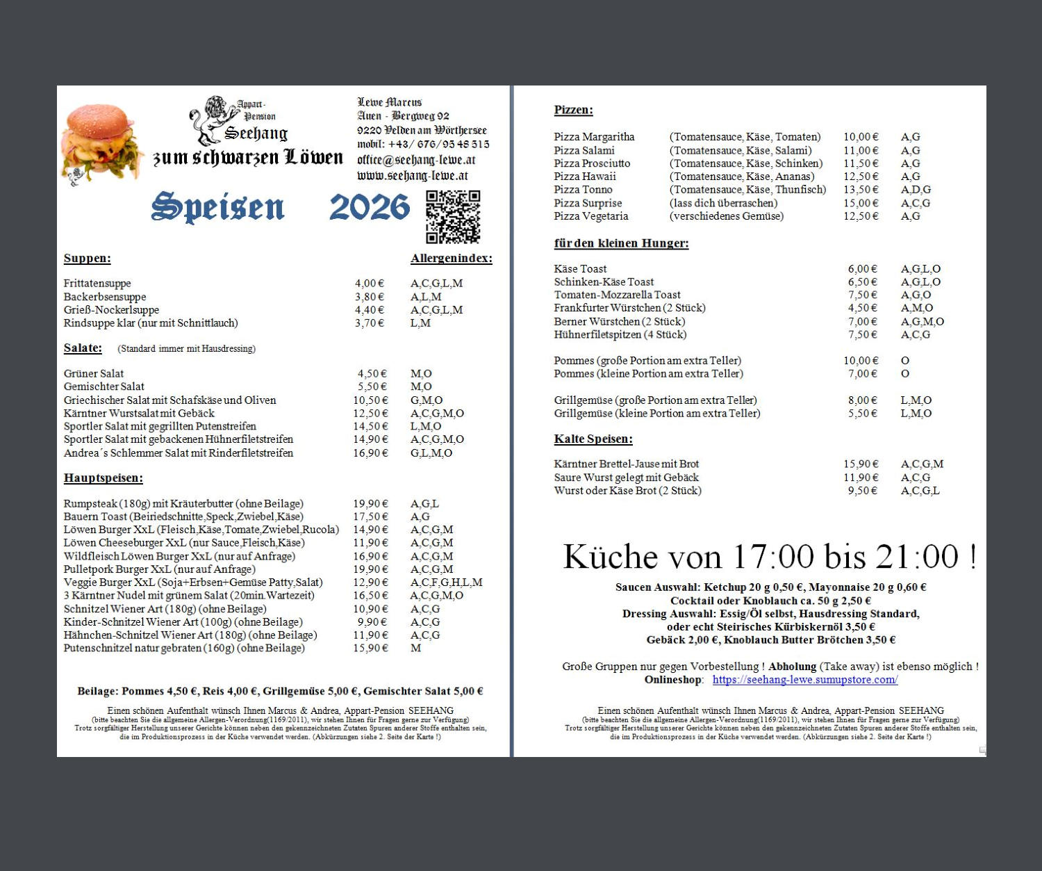 Zur Online Speisekarte !